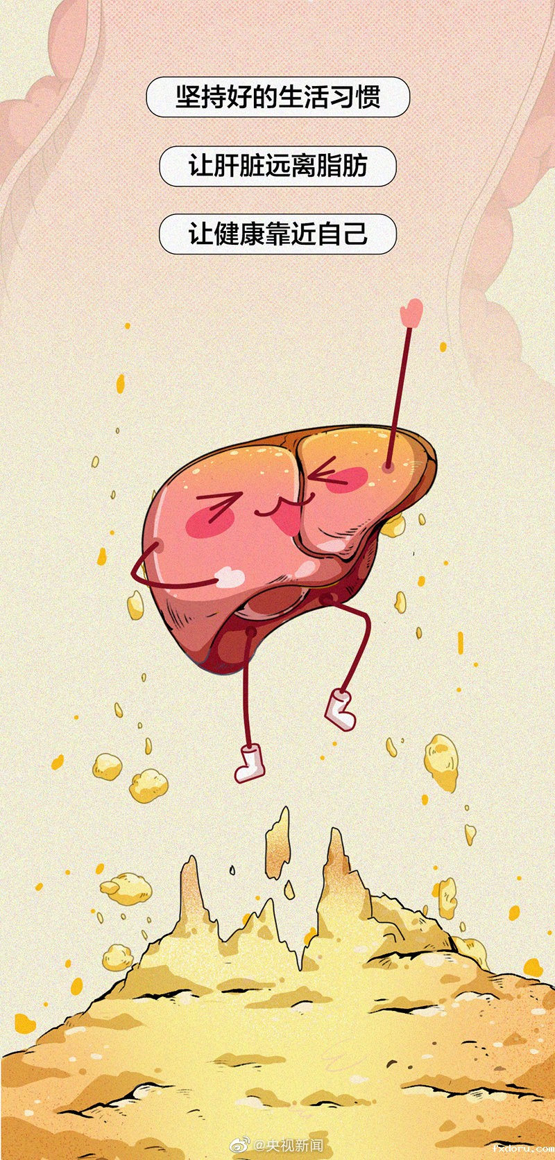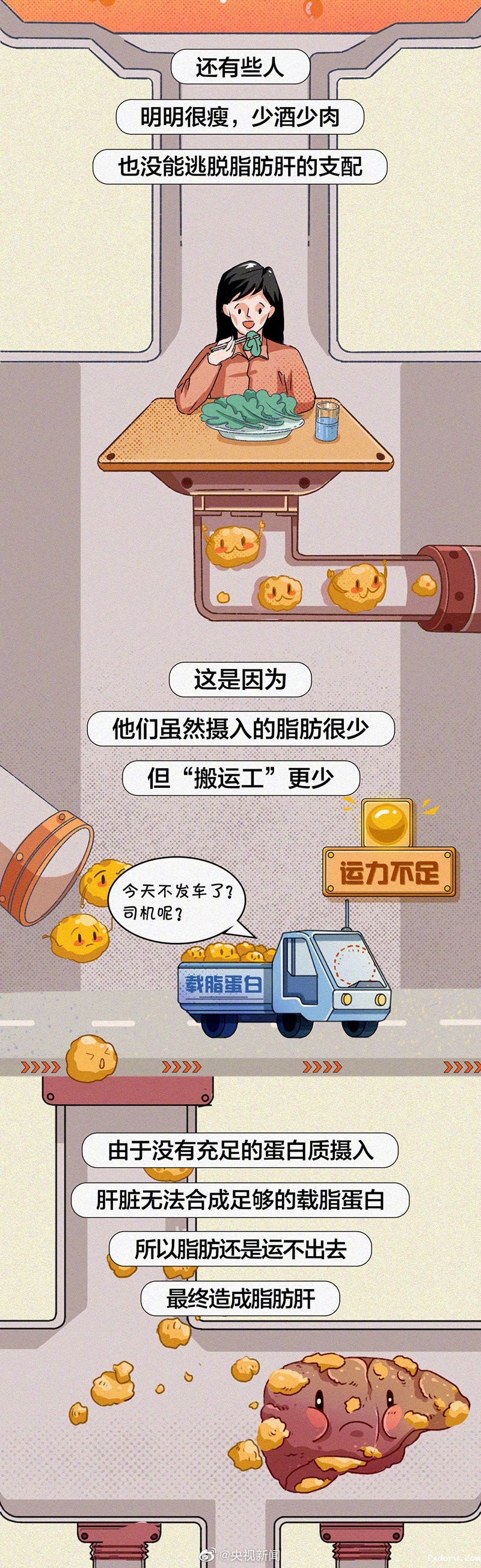 目前,脂肪肝已成世界第一大肝病。很多人因为症状不明显,就不在意,却不知脂肪肝也会发展成肝炎、肝硬化甚至肝癌。哪些原因会造成脂肪肝?#为什么少酒少肉也会患脂肪肝#?今天世界肝炎日,一起了解↓坚持好的生活习惯,让肝脏远离脂肪!为健康转发!