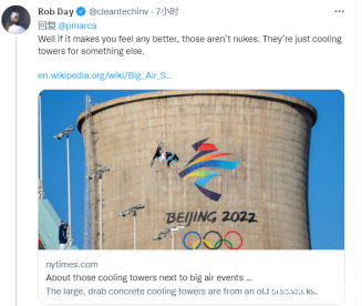 该网友还在推文中附上《纽约时报》一篇有关首钢奥运场地的介绍。报道中说,它建在首钢集团一个有100年历史的钢铁厂的旧址上,这座钢铁厂与奥运会还有另一个联系:由于属空气污染源之一,它在2008年夏季奥运会之前被关闭,而这个工业基地正在被改造成办公楼、咖啡馆等设施的综合体,包括今年北京冬奥会的场馆。