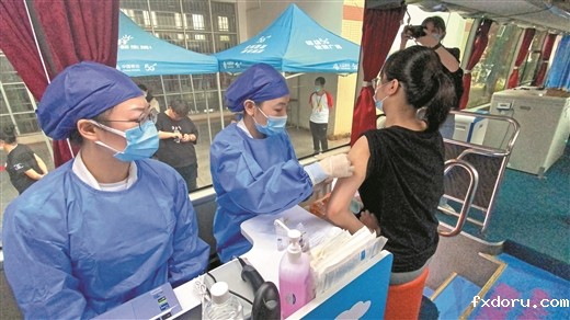 移动接种车为南宁师范大学师园学院的师生接种疫苗。 南国早报记者 苏华/摄