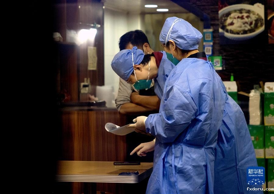 3月17日凌晨,上海市青浦区疾控中心流调人员在相关场所进行排摸。新华社记者 刘颖 摄