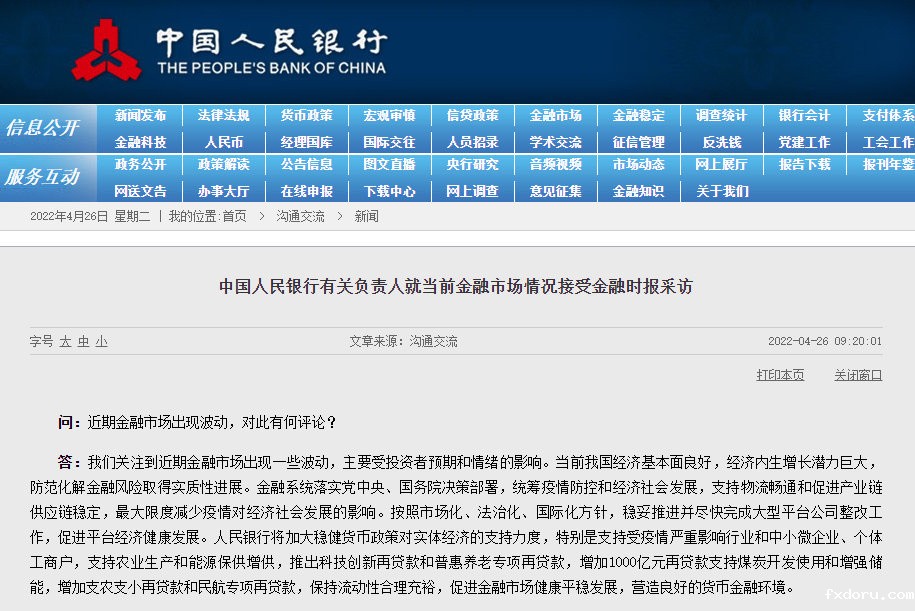 答:我们关注到近期金融市场出现一些波动,主要受投资者预期和情绪的影响。当前我国经济基本面良好,经济内生增长潜力巨大,防范化解金融风险取得实质性进展。金融系统落实党中央、国务院决策部署,统筹疫情防控和经济社会发展,支持物流畅通和促进产业链供应链稳定,最大限度减少疫情对经济社会发展的影响。按照市场化、法治化、国际化方针,稳妥推进并尽快完成大型平台公司整改工作,促进平台经济健康发展。人民银行将加大稳健货币政策对实体经济的支持力度,特别是支持受疫情严重影响行业和中小微企业、个体工商户,支持农业生产和能源保供增供,推出科技创新再贷款和普惠养老专项再贷款,增加1000亿元再贷款支持煤炭开发使用和增强储能,增加支农支小再贷款和民航专项再贷款,保持流动性合理充裕,促进金融市场健康平稳发展,营造良好的货币金融环境。