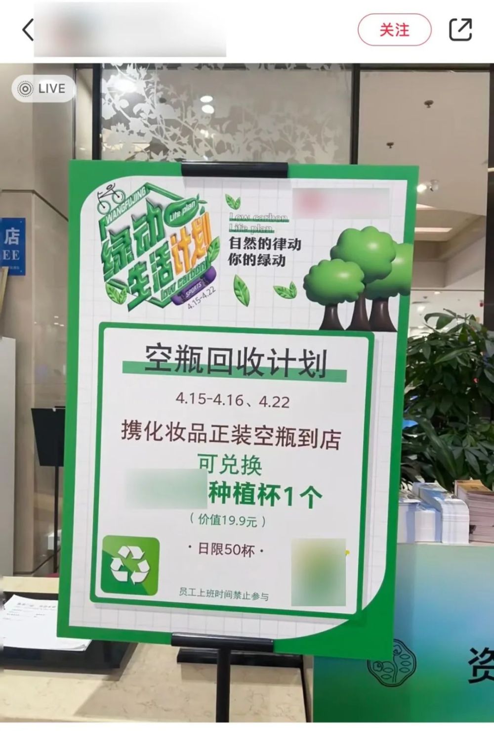 目前,相关平台已经关注到了收购空瓶以造假的行为。在有些二手平台搜索空瓶后,用户会收到风险提示;不少化妆品品牌也推出了官方渠道的“空瓶回收计划”,对正装空瓶进行回收,回收成功后将给予消费者丝巾等礼品;⼀些商场也加入了回收行列,设置专门的护肤品、化妆品空瓶自助回收机,以发送消费券等形式鼓励消费者投放空瓶。