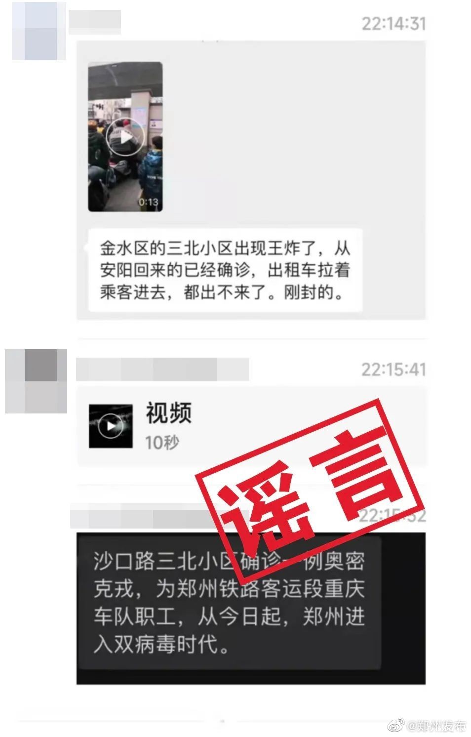 近日,网传消息称“郑州金水区沙口路三北社区出现‘王炸’确诊一例奥密克戎、郑州进入双病毒时代”“郑铁三北小区出现隐瞒安阳返郑行程的奥密克戎确诊病例”......