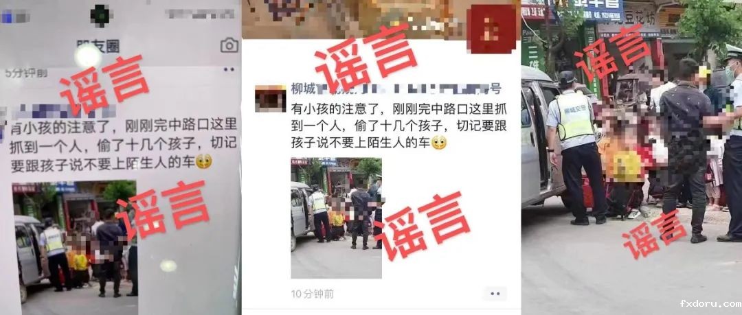 近日,柳州市柳城县警方关注到网络上出现“偷小孩”的消息在微信朋友圈传播。在此,提醒广大市民,这纯属谣言,乱传假消息或将受到处罚!