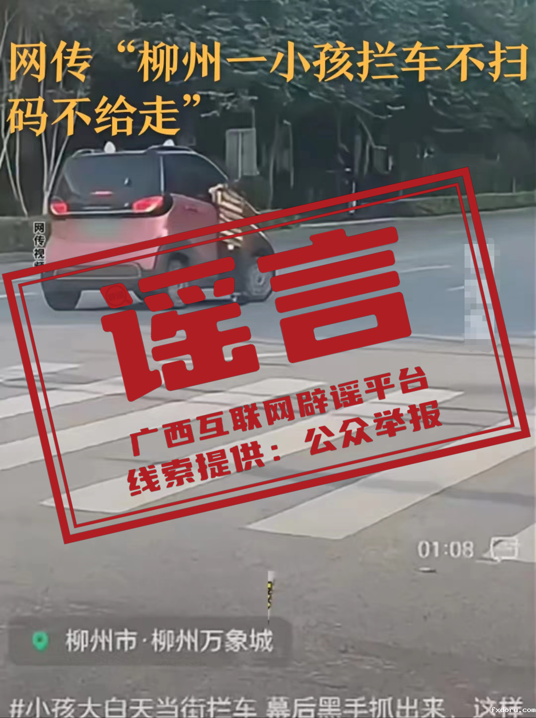 近日,有网民在短视频平台发布视频称 “柳州一小孩拦车要钱,不扫码不让走”在网上引起网民大量转发和评论。